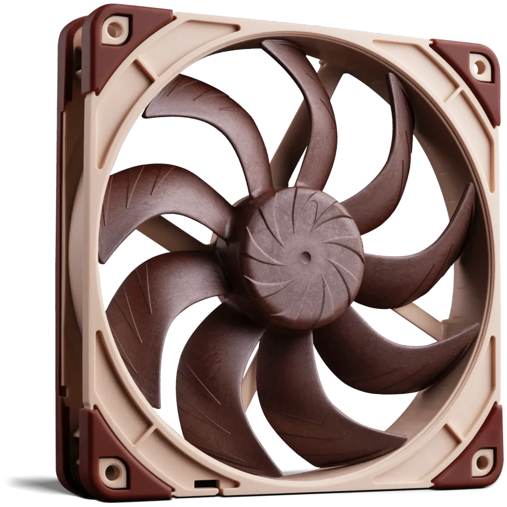Noctua NF-A14x25 G2 PWM — больший 140 мм вариант, хорошо подходит для крупных NAS-корпусов. При низких оборотах (либо с «low noise» адаптером) даёт почти бесшумную работу и при этом справляется с вентиляцией большего объёма воздуха.